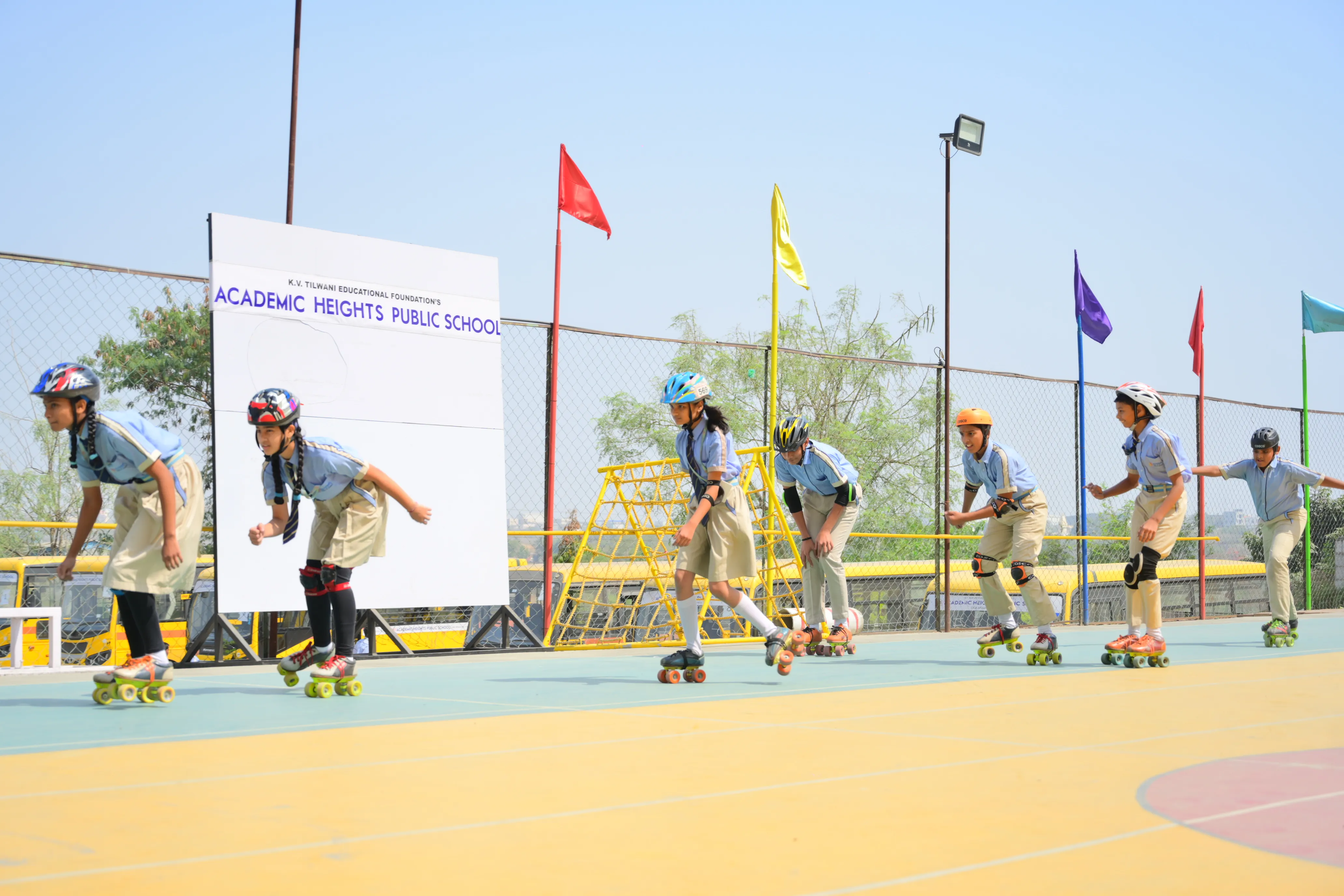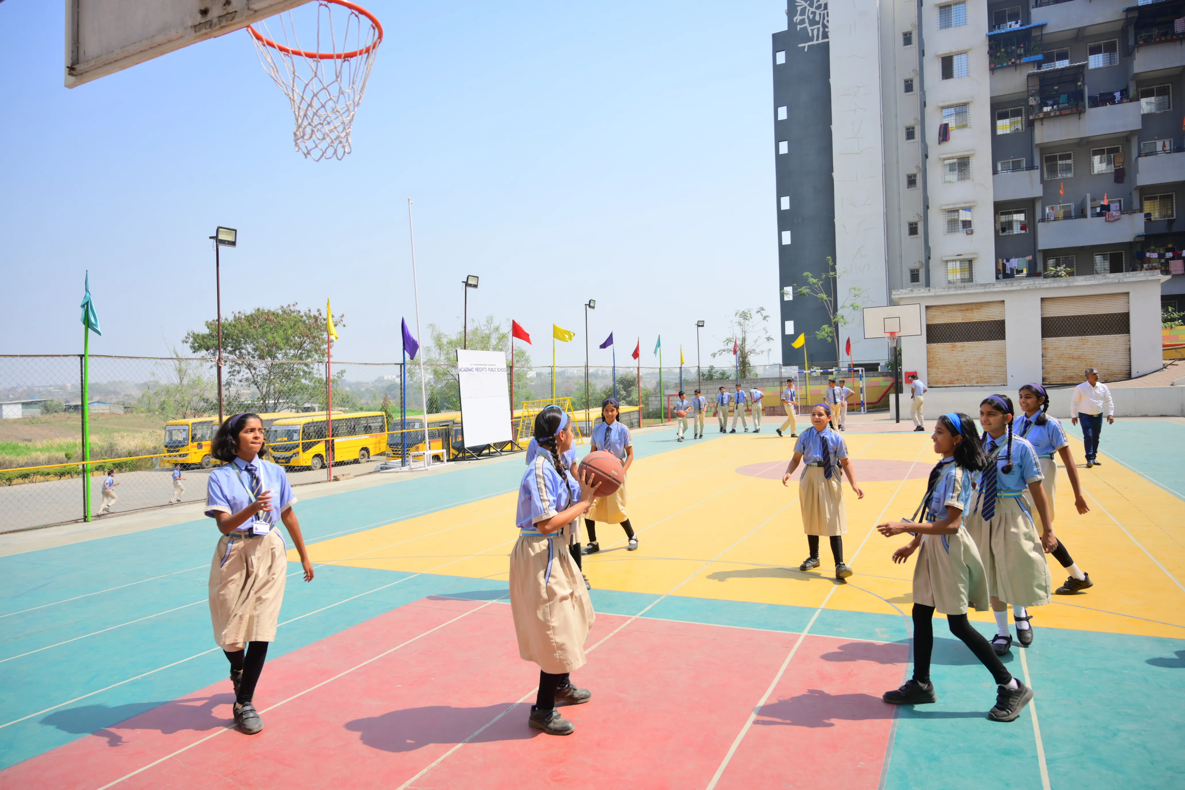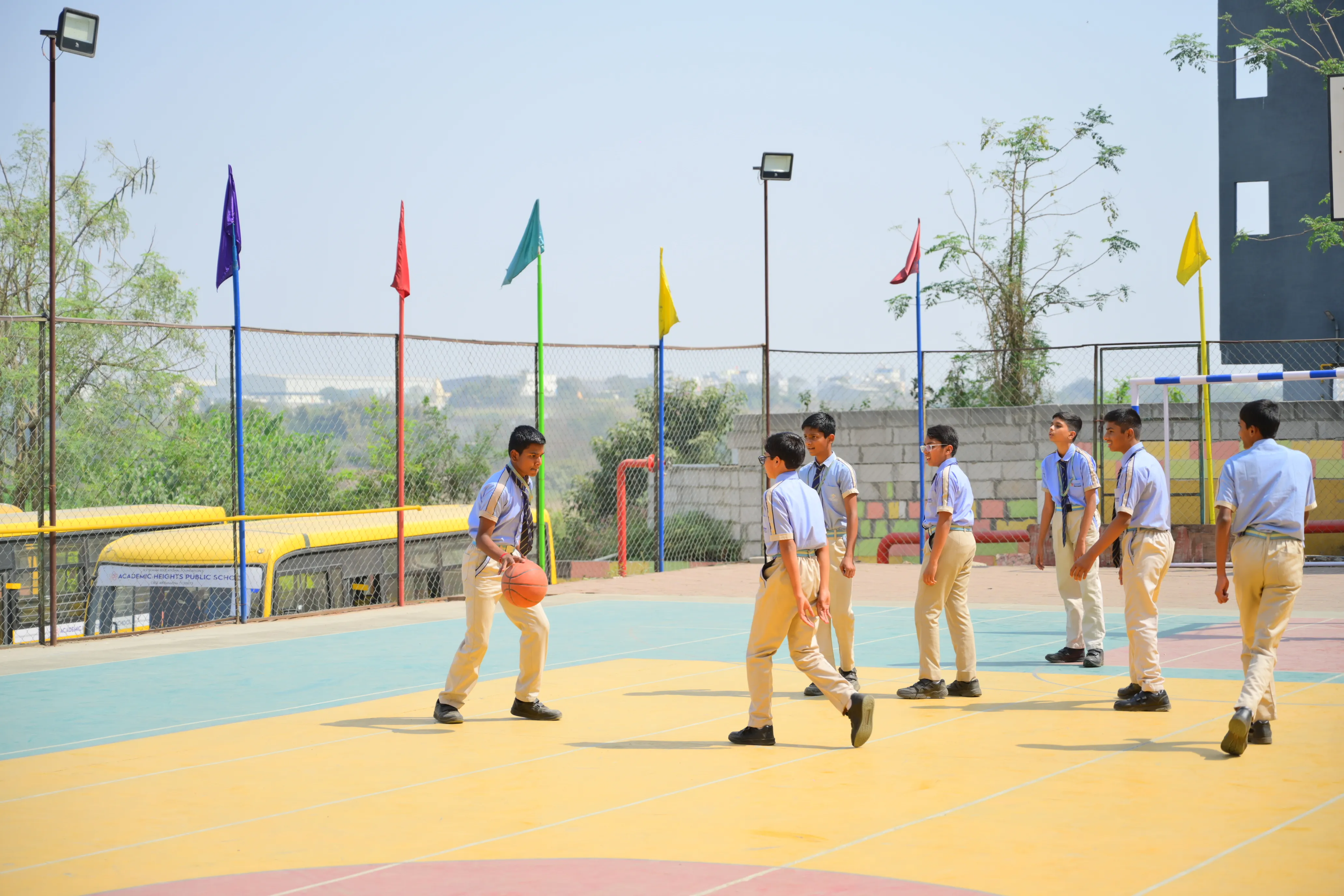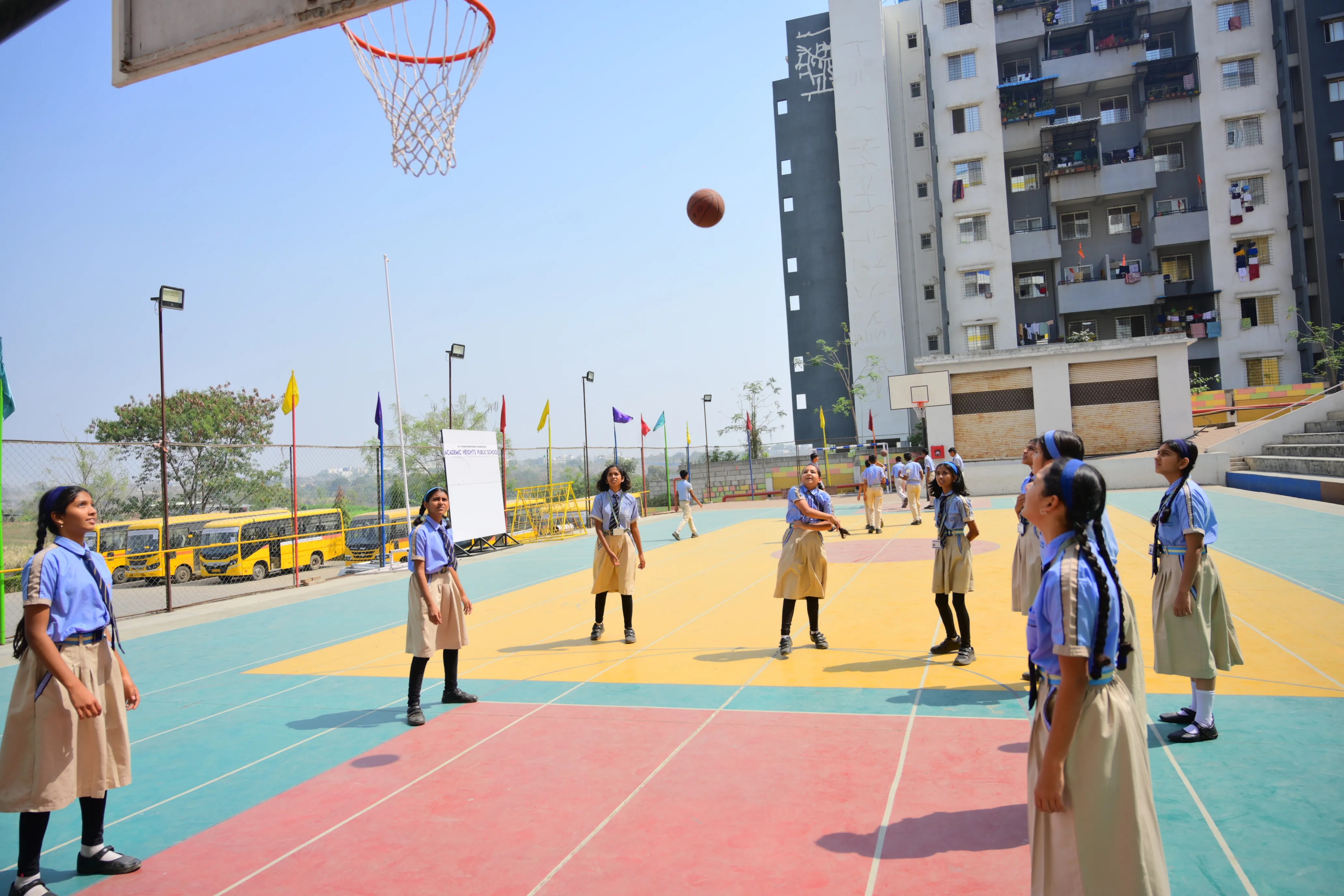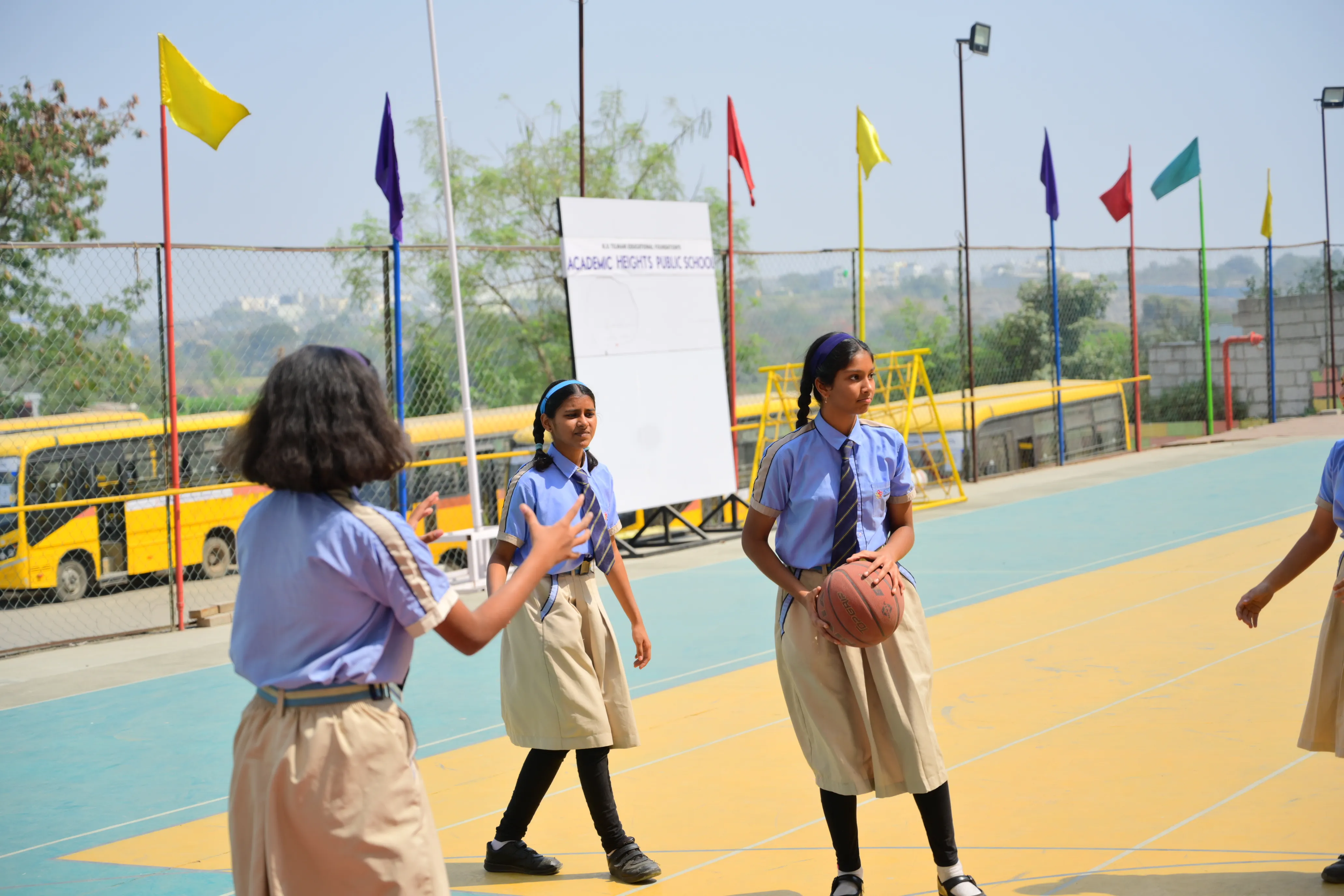 Students can avail the school transport arrangements subject to the availability of seats. The school does not entertain any request for change in bus-routes to suit an individual’s convenience. Change of bus stop for a day or a week is not entertained.
