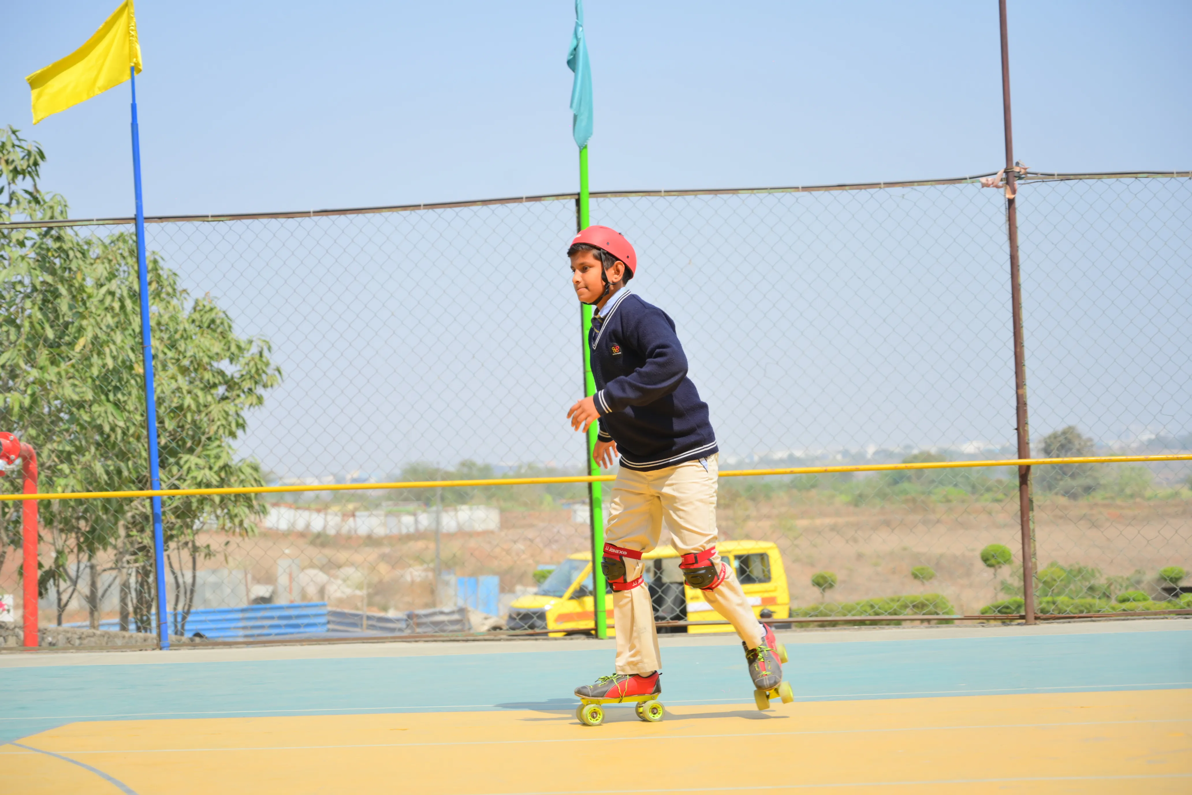 Students can avail the school transport arrangements subject to the availability of seats. The school does not entertain any request for change in bus-routes to suit an individual’s convenience. Change of bus stop for a day or a week is not entertained.